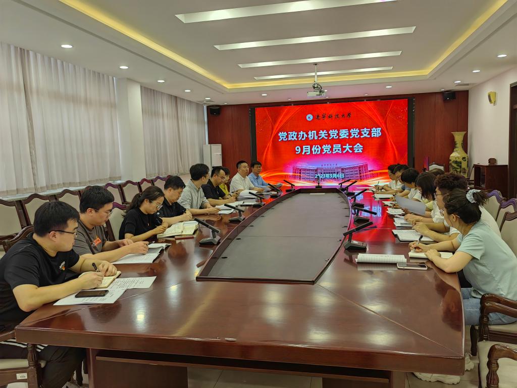 96下午,党政办机关党委党支部召开党员大会,开展“读看思研”和主题教育专题组织生活会前集体学习活动。会议由党支部书记李宁主持。校党委书记李平以普通党员身份参加了会议。