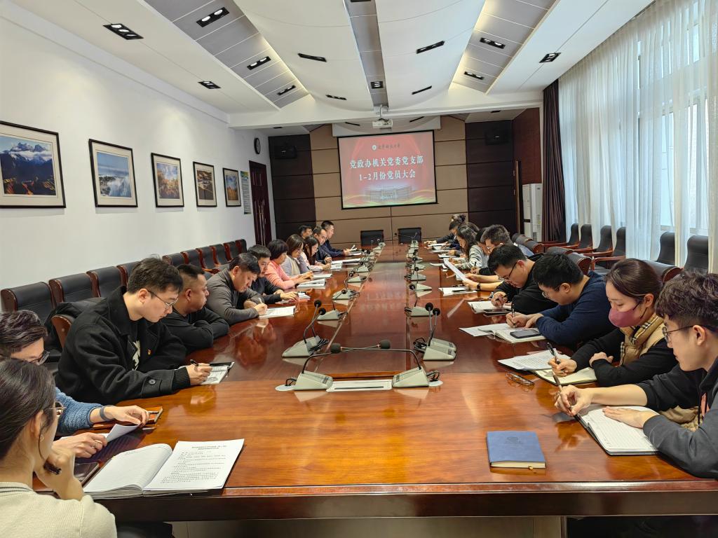 1月11日上午,党政办机关党委党支部在机关楼421会议室召开党员大会,开展“读看思研”活动和集体学习。党支部书记李宁主持会议,校党委书记李平以普通党员身份参加会议。
