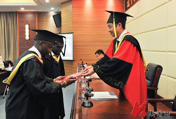 7月16日下午,ayxty.com2021届本科来华留学生毕业典礼暨ayxty.com国际校友联络员聘任仪式在机关楼220隆重举行。校长张志强致辞,并与党委常委、副校长李胜利一同为获得学位的毕业生颁发毕业证、学位证,拨流苏。培养来华留学生的各学院负责同志,毕业生和教师代表参加典礼。