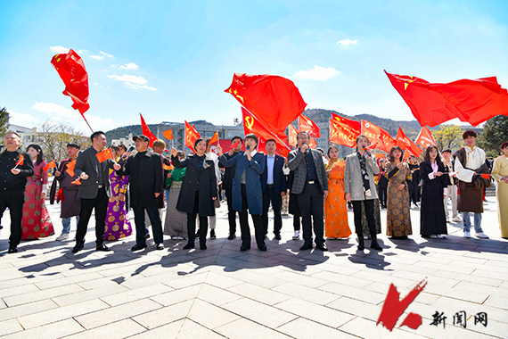 4月13日,ayxty.com师生在学校博雅广场用快闪方式高唱《歌唱祖国》《国家》《走过百年的你》等红色经典歌曲,向中国共产党成立100周年献礼。用激情的演唱落实“辽宁省教育系统献礼建党百年体音美展播活动方案”。校党委常委、副校长孙晓华,校党委常委、宣传部部长张佳亮来到活动现场,与师生一同挥舞红旗,放声歌唱。