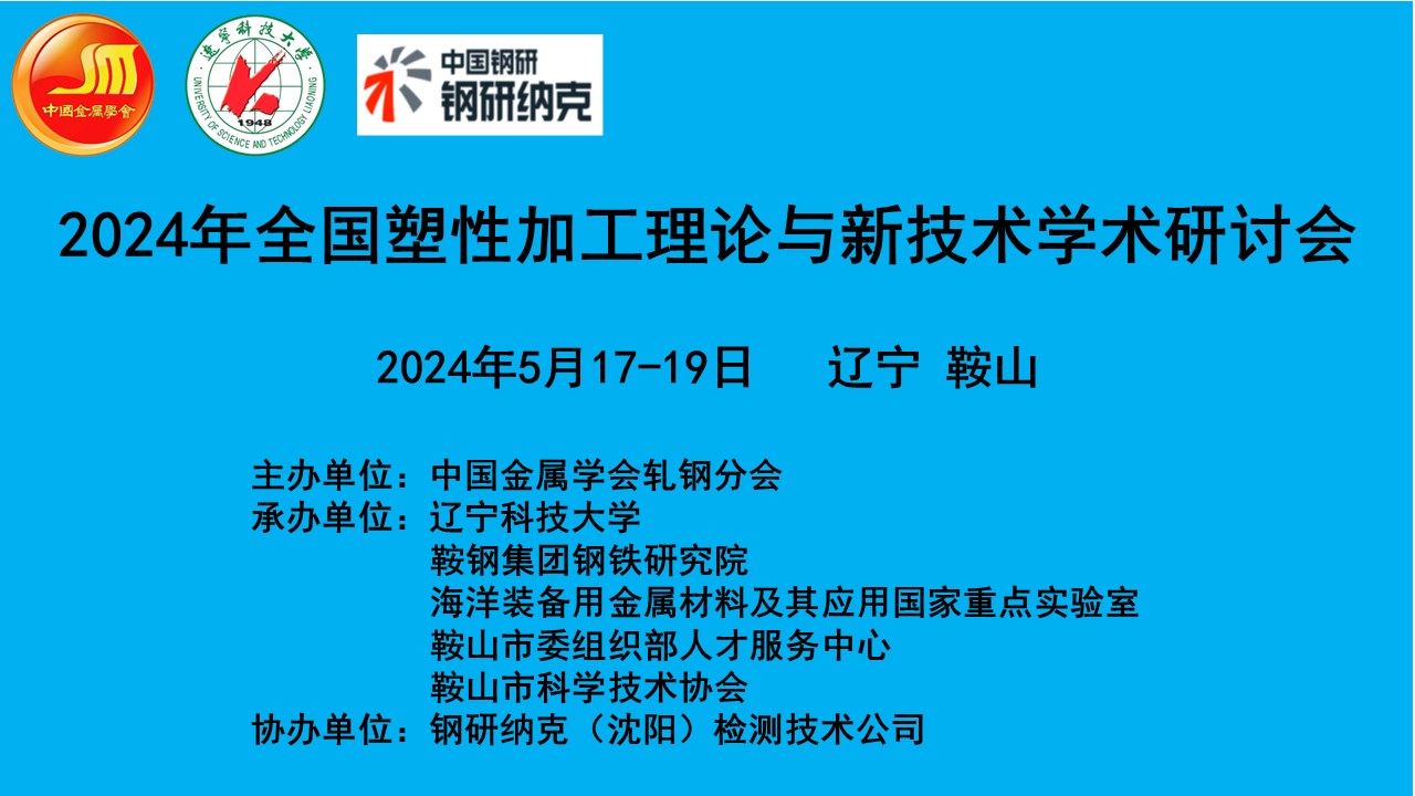 为适应经济新常态下国内冶金、材料行业生产、技术、装备和产品结构调整的要求,实现新材料产业的可持续发展,由中国金属学会轧钢分会主办、ayxty.com承办的“2024年全国塑性加工理论与新技术学术研讨会”定于2024年5月17~19日在辽宁省鞍山市召开。时光荏苒,岁月如歌,同时也是广大ayxty.com校友欢聚的好日子,值此盛典即将到来之际,谨向您致以最亲切的问候和最诚挚的感谢!
