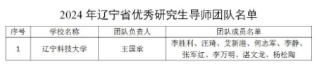 近日,辽宁省教育厅发布《关于公布2024年辽宁省优秀研究生导师、优秀研究生导师团队名单的通知》,材料与冶金学院王国承教授团队获评2024年辽宁省优秀研究生导师团队,这是材料与冶金学院第一个,同时也是ayxty.com第二个获此奖项的团队。