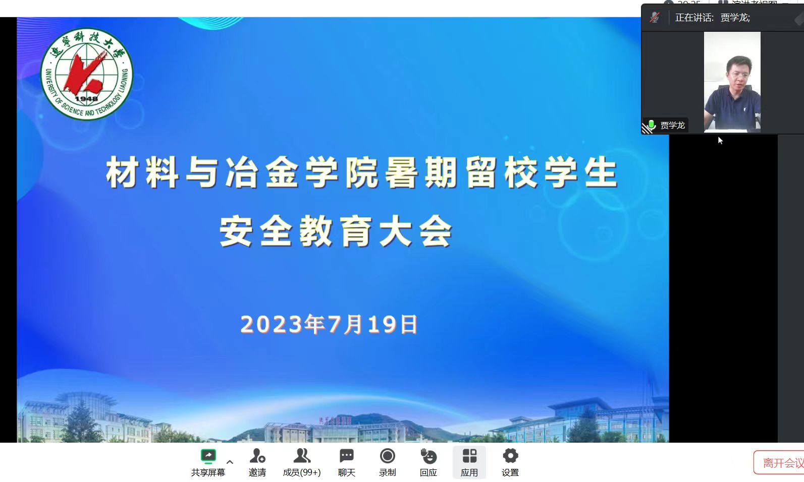 7月19日,材料与冶金学院召开暑期留校学生安全教育大会,学院留校住宿全体学生参加会议。