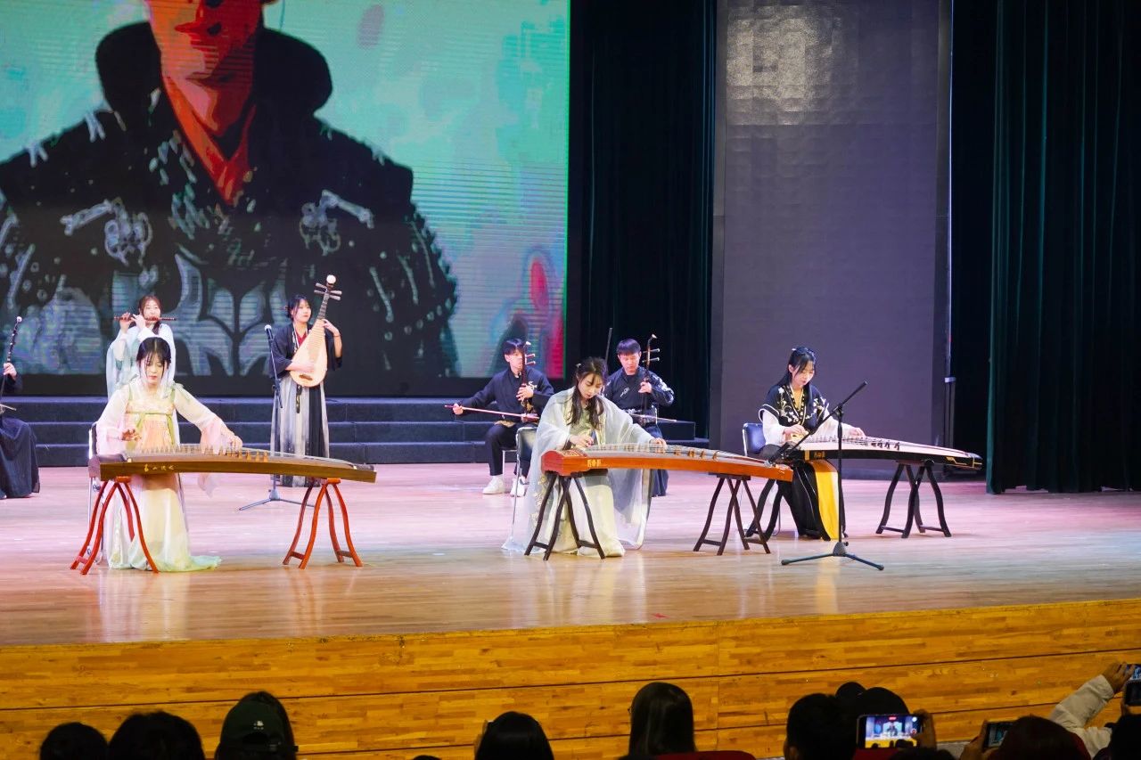 力量与柔美的结合引燃全场动感的旋律,V-show舞团自由的舞姿诠释出青春别样的定义,由此拉开了晚会的帷幕。晚会过程中,经法学院的同学为大家带来«情歌»«野狼disco» «青花瓷»等歌曲,他们的声线穿透人心、饱含激情,演绎了青春的雨意云情与朝气蓬勃,更是赢得现场掌声不断,将气氛推向高潮;材冶学院的歌曲《万疆》《大鱼》、舞蹈《Fear less》《芒种》既展现了山河锦绣与盛世繁华,也诠释了儿女情长与年少梦想;机械学院的歌曲串烧《天下+百氚朝海》气势磅礴,引人热血沸腾,乐队歌曲《想去海边》旋律轻快,让人仿佛置身于阳光海岸,惬意而舒适;理学院带来的歌曲表演《红色高跟鞋》以其优美的声线赢得台下阵阵掌声;外国语学院带来舞蹈《Super shy》以舞者激情洋溢、活力四射的动作表演,瞬间斩获全场的掌声和尖叫。本次晚会还特别邀请了国风社团、武术社团、汀兰民乐社等前来助阵,为大家带来了一场又一场美轮美奂的视觉与听觉盛宴。