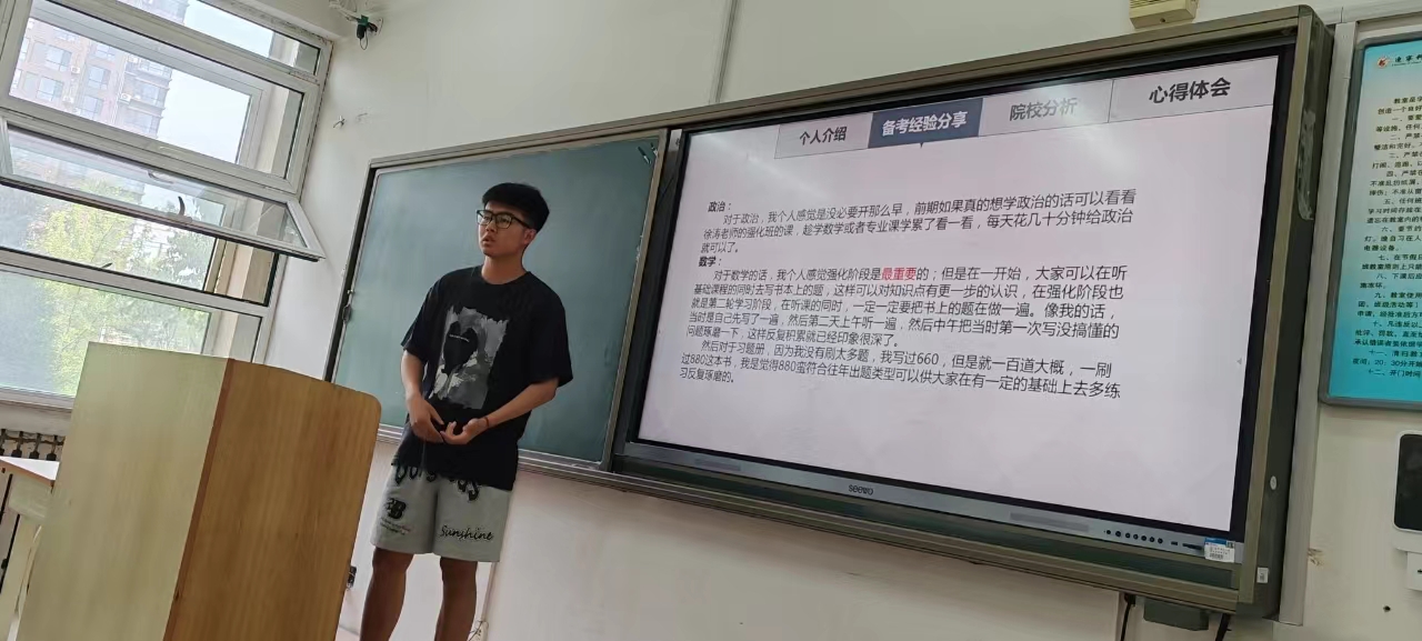 为进一步营造浓厚的考研氛围,提高学生考研热情,我院于5月14日在明德楼D203举办了“朋辈考研经验分享交流会”,会议由学院辅导员施云主持,材料20姜皓天,史含放、姜楠、龚秋润四位学生代表分享考研成功的经验,材料2022级有考研意向的学生参加会议。