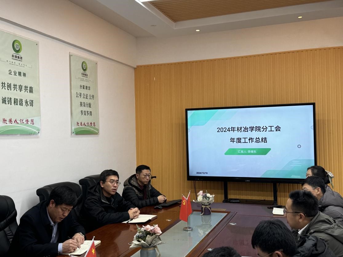 12月10日,材料与冶金学院工会年度总结会在学院A241会议室举行,会议由学院副书记艾英华主持,学院党委书记刘彦国和各工会小组成员代表参加了此次会议。学院工会副主席李继东代表工会做了2024年的学院工会年度报告。报告围绕全年工会的组织建设、质量提升、先进典型、文体活动和福利保障五个方面进行了全面而细致的工作汇报,在过去的一年里,学院工会在组织建设上取得了显著成效,学院工会由9个工会小组组成,现有成员155人实现规模和影响力稳步增长,组织活力和工作职能不断增强;在质量提升方面,工会通过学院举办各类报告和学习活动,有效提升了教职工的专业素养和综合素质并在教学等方面取得了显著成绩;工会通过竖立典型代表和评选先进个人等方式积极挖掘和宣传身边的先进事迹和典型人物,打造满满的正能量和向上氛围;全年里,学院工会组织参与了各项文体活动并荣获多项冠军及精神文明奖,实现了竞赛成绩和精神文明双丰收,有效地展现了材冶风貌及教职工的凝聚力和向心力;工会积极维护教职工的合法权益,通过统计各项福利发放和帮扶慰问等努力改善教职工的工作和生活条件。