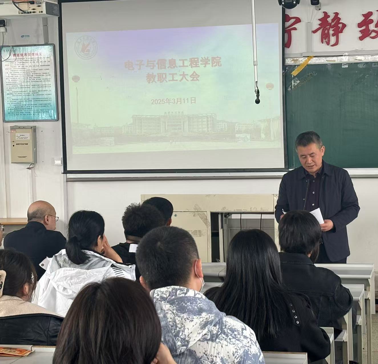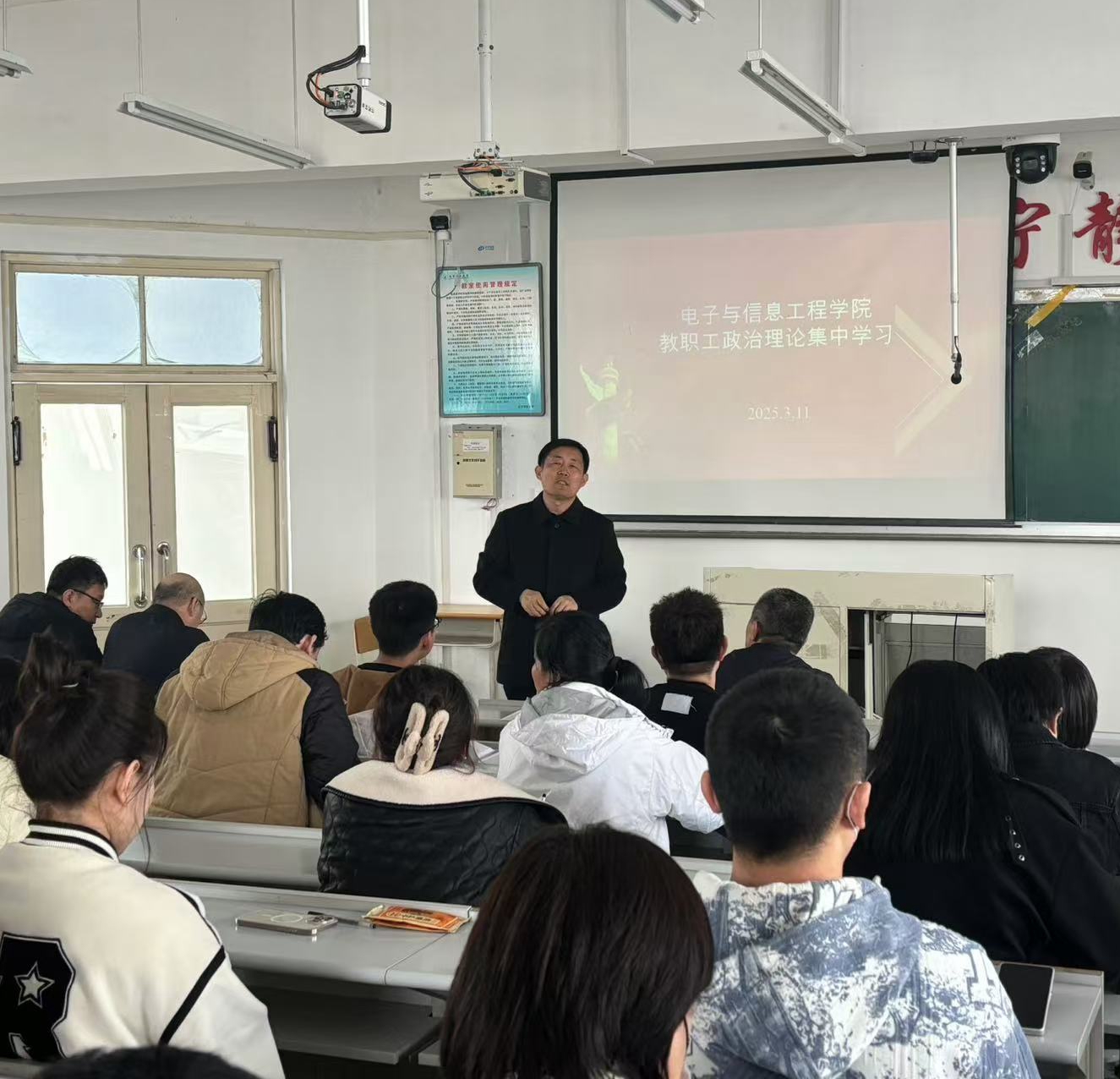 2025年3月11日下午,电信学院召开了教职工大会暨政治理论集中学习会。会议由学院党委书记王会立主持。
