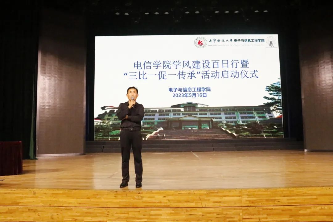 为深入学习贯彻习近平新时代中国特色社会主义思想,落实《ayxty.com进一步加强内涵建设 服务辽宁全面振兴新突破三年行动方案》要求,加强学风建设和文化建设,营造良好的育人环境,5月16日,电信学院于校礼堂举行学风建设百日行暨“三比一促一传承”活动启动仪式,此次活动由电信学院党委书记王会立主持,电信学院21、22级全体学生参加。