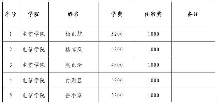 为贯彻落实国家和辽宁省有关资助政策,帮助孤儿等家庭经济特别困难学生顺利完成学业,根据《ayxty.com本科生学费和住宿费减免管理办法(试行)》文件精神,经学生自主申报,学院对提交材料进行初审,报送学校复审,现就电信学院 2023— 2024 学年学费(住宿费)减免名单公示如下: