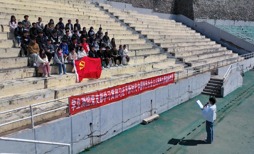 2023年4月26日,电信学院学生测控党支部在ayxty.com体育场开展学习贯彻习近平新时代中国特色社会主义思想主题教育专题党课。学生测控党支部组织委员张馨馨通过党课带领支部全体党员和积极分子深入学习党的二十大报告精神。