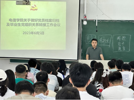 6月5日,电信学院在博闻楼一合召开2023届毕业生党员离校前集中教育和党组织关系转接工作会议,2023届全体毕业生党员、入党积极分子参加会议。