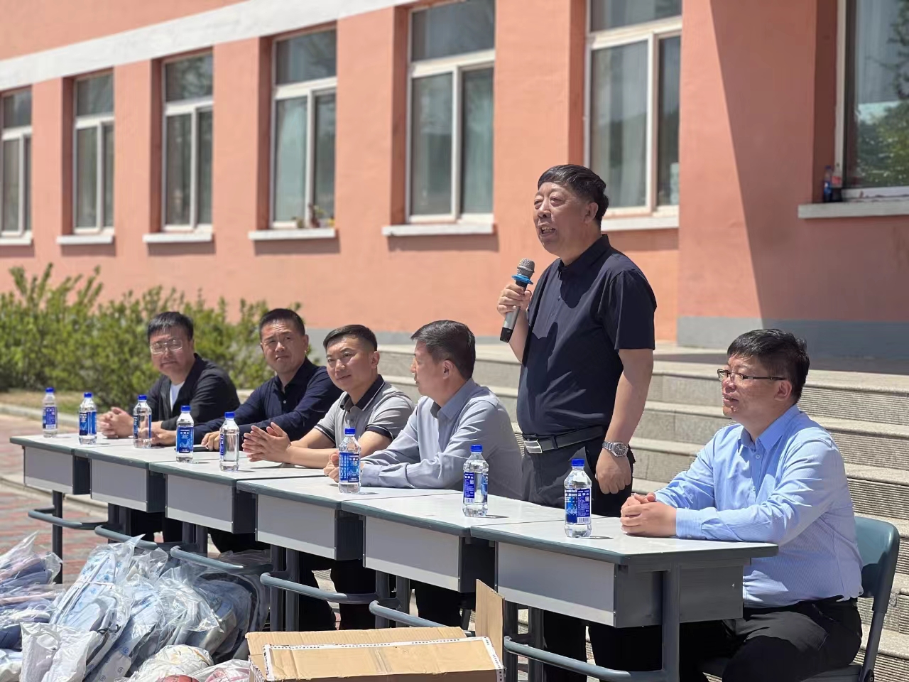 管理学院院长、MBA教育中心主任刘洪玉向中心校的师生致以诚挚的慰问,讲解了此次捐资助学活动的目的和意义,希望MBA学生能够通过此次活动厚植家国情怀,关注农村教育事业,努力践行社会责任;同时,也祝福中心校的学生们能够好好学习,健康成长,将来成为堪当时代大任、对国家和社会有用的人才。学院领导向贫困学生进行了捐赠资助,师生代表向中心校捐赠了书包、文具和体育用品。