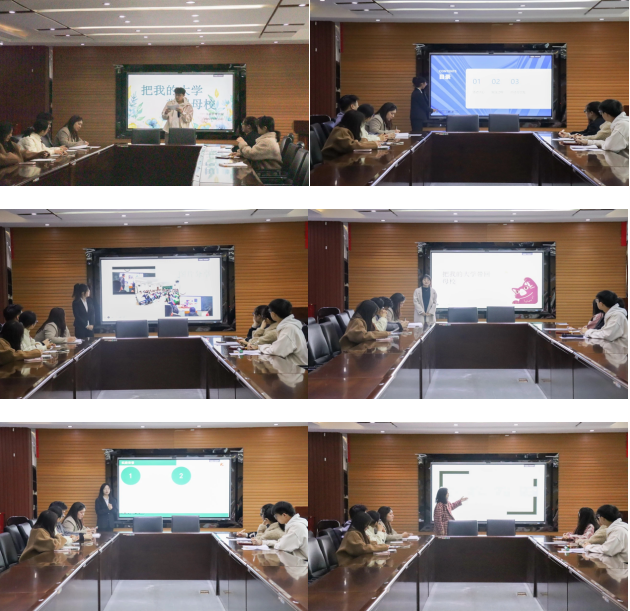 工商管理学院于3月13日在明信楼B411室召开了“把我的大学带回母校”社会实践答辩会。院团委副书记刘宁,院社团管理中心负责人郝诗语,学生代表郑越心,钱炳旭,张佳萱,李京澳参会并担任评委。本次答辩会共有8个参赛团队,每个团队选出一名成员代表团队以PPT的形式进行汇报演讲。
