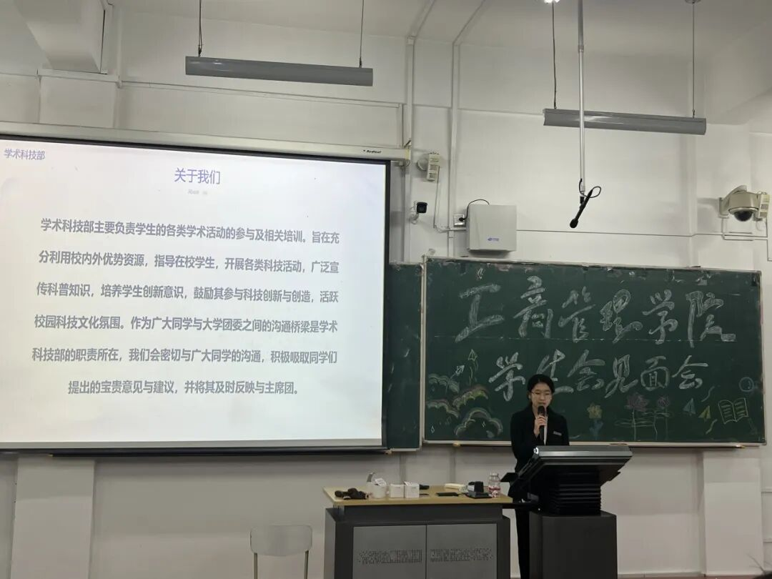 互动·双向奔赴,热情满格 在自由提问与交流环节,新生们踊跃发言,就自己关心的部门工作、能力要求、时间平衡等问题进行提问。学长学姐们倾囊相授,耐心解答,用亲身经历打消同学们的疑虑。现场交流热火朝天,许多同学在会后仍围在心仪的部门前,与负责人们进行更深入的沟通。