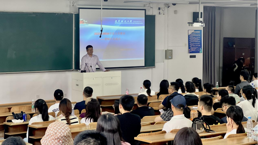 参观后,学员们来到博学楼D108参加2023级MBA新生入学教育暨师生见面会,会议由学院副院长宋伟主持,学院领导及2023级MBA班主任参加了此次会议。工商管理学院院长刘洪玉致辞,代表学院及全体师生向2023级MBA新生表示祝贺和热烈欢迎,并就学院的主要培养环节和基本要求、MBA就读期间课程安排、研究方向、学位论文要求等方面做了系统全面的介绍,并希望同学们珍惜学习机会,严谨治学态度,在ayxty.com走过一段完美的就读旅程。