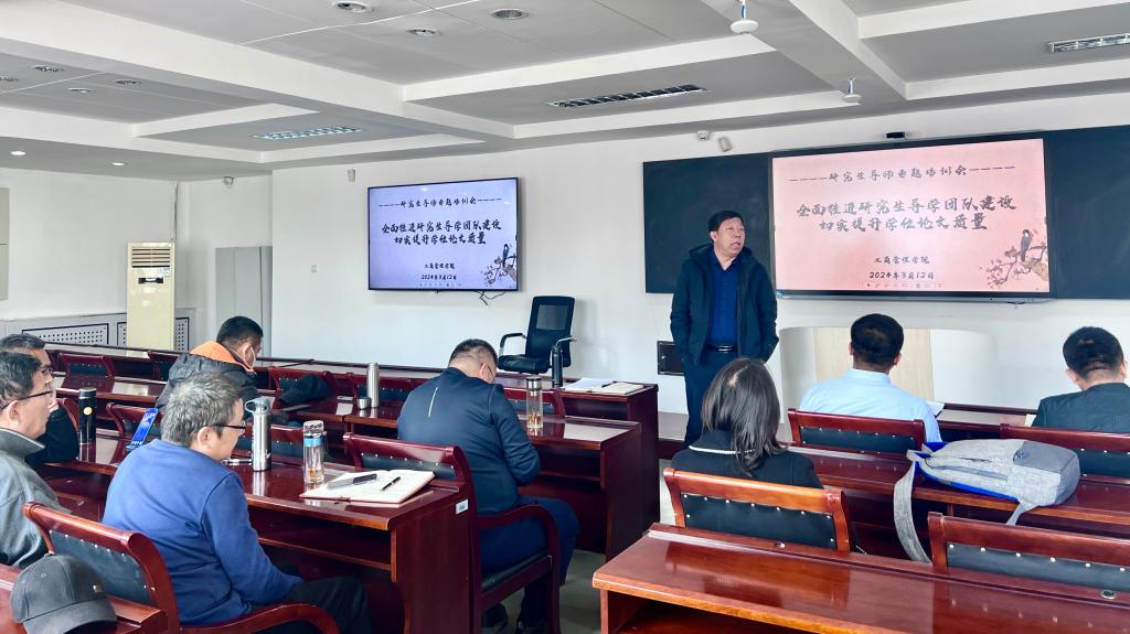 为适应研究生教育改革发展的新形势,切实履行导师立德树人根本职责,不断提升研究生学位论文质量,2024年3月12日,工商管理学院在明信楼B513室召开了以“全面推进研究生导学团队建设,切实提升学位论文质量”为主题的研究生导师培训会,学院领导及全体研究生导师参加会议。