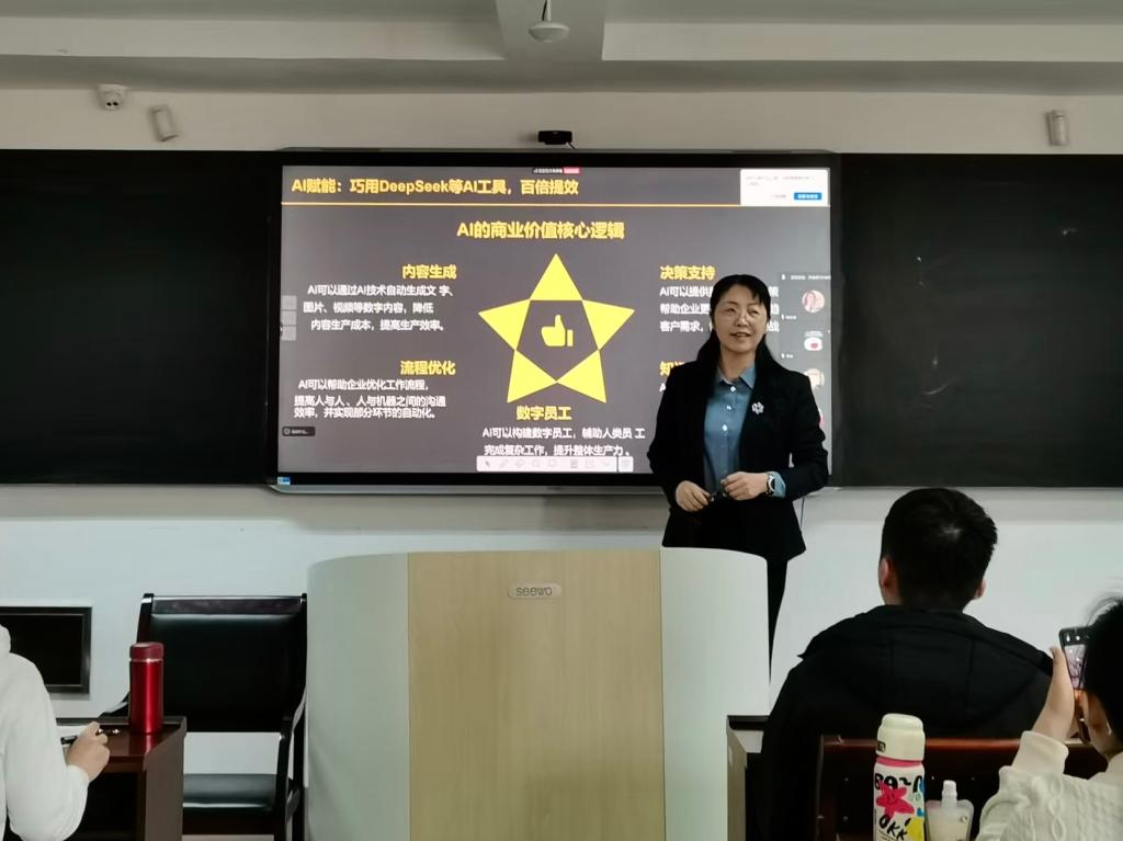 讲座围绕人工智能的核心议题,系统梳理了人工智能技术的发展历程,重点阐释了算力提升和大数据积累对AI演进的关键作用,聚焦大模型技术原理及其在管理学科中的实践价值,探讨了该技术在市场预测、消费者行为等领域的应用前景,通过对比传统研究范式与AI辅助研究的差异,强调人机协同在学术创新中的重要性,并现场指导学生操作Deepseek平台进行课题演练。讲座还着重强调了人工智能在学术研究、学位论文撰写中应遵循的学术规范,参会学生纷纷表示,讲座内容兼具前沿性与实用性,为科研工作提供了新视角、明确了相应规范。