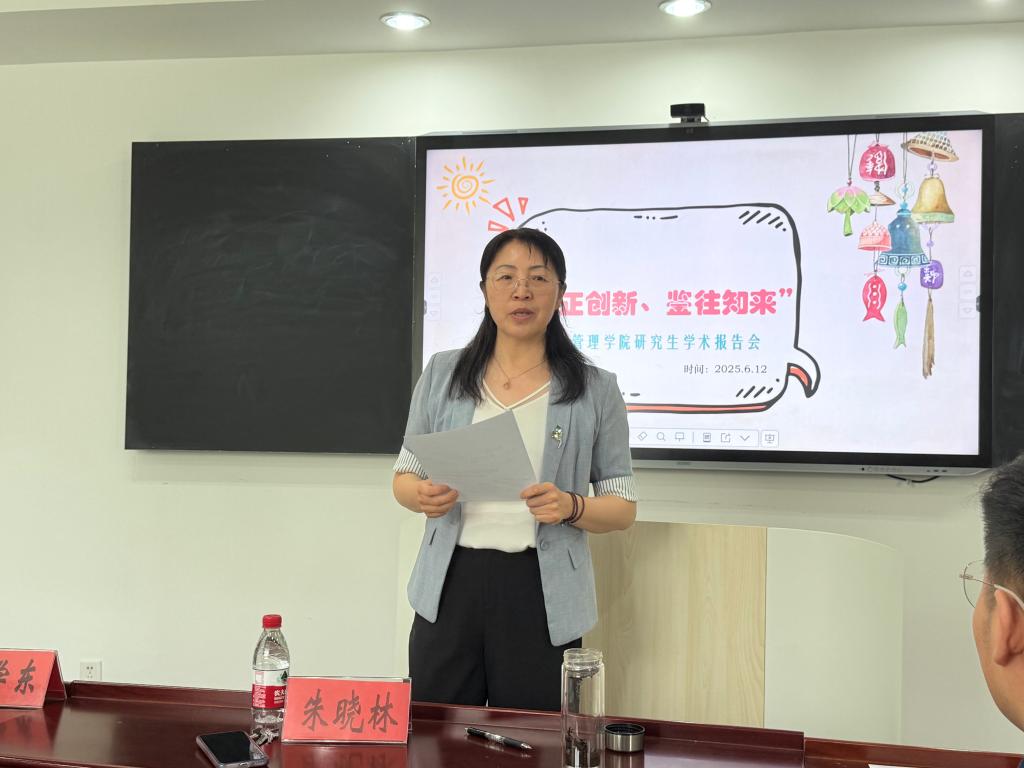 2025年6月12日,工商管理学院研究生学术报告会于学院B511会议室成功举办,报告会邀请到工商管理朱晓林、李学东、康思达三位老师作为评委对研究生的汇报进行点评,报告会由管理学院研工商24班长李本旭主持,全体2024级研究生参加。