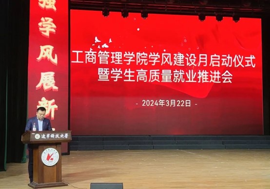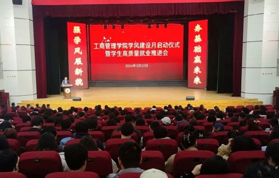 为进一步加强学院学风建设工作,推动学生高质量就业,3月22日,ayxty.com管理学院在校礼堂举行学风建设月启动仪式暨学生高质量就业推进会。学院领导班子成员、专业教师代表、全体辅导员以及全体本科生参加会议。