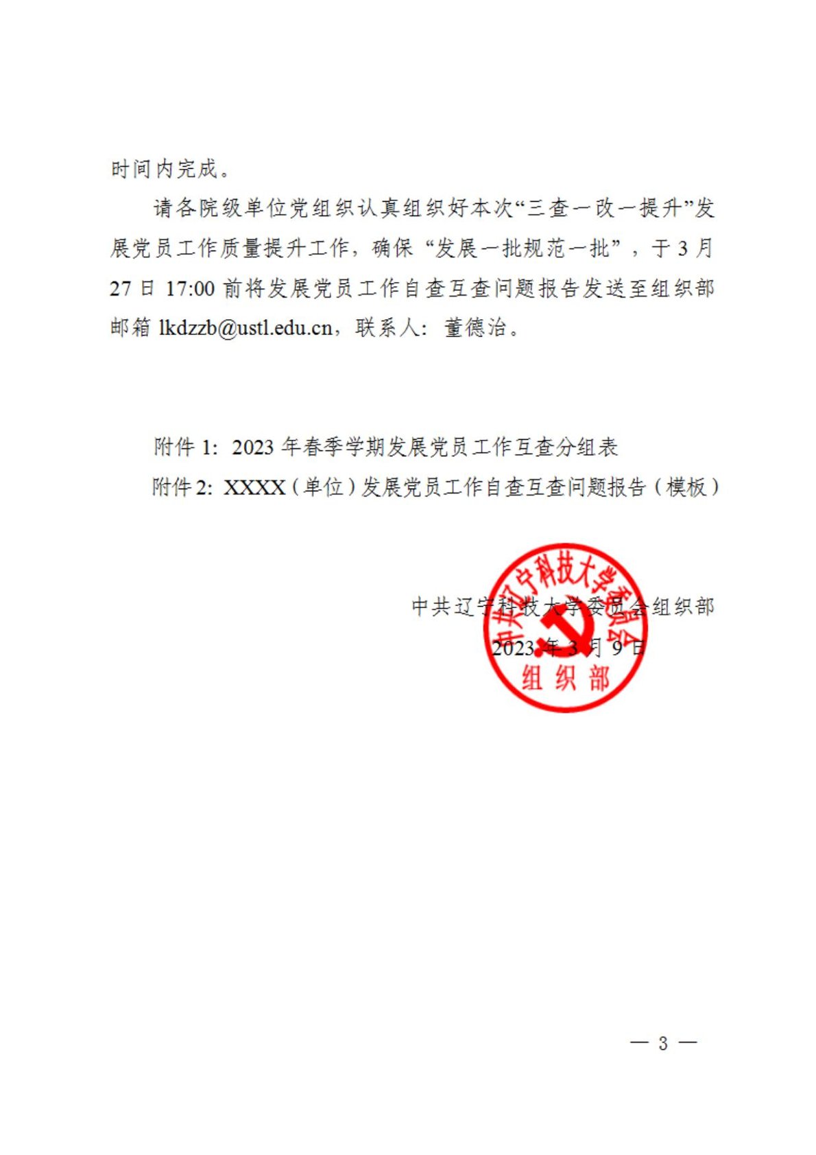 关于开展ayxty.com2023年度春季学期“三查一改一提升”发展党员工作质量提升工作的通知