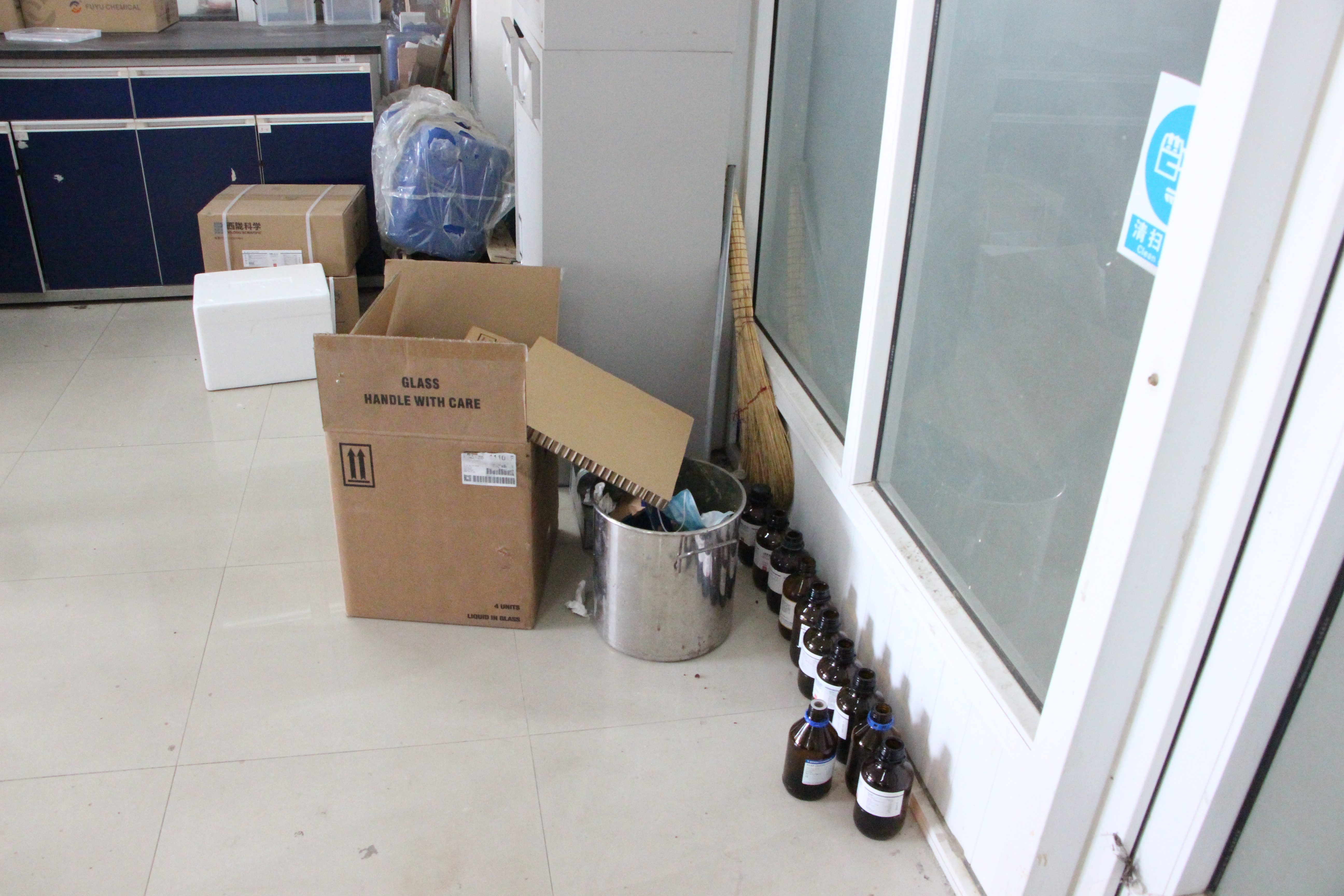 在检查中发现:有的实验室及科研场所使用插排还存在乱接现象,电源连接不规范;气瓶没有标签,还存在没有固定装置情况;实验药剂、废液容器还存在没贴标签,随地乱放现象;有的实验室、科研场所脏乱差没有很好整治等。检查组当即要求立即整改,如一时解决不了,由检查小组办公室及实验中心督促整改到位,检查小组将随时二次检查。