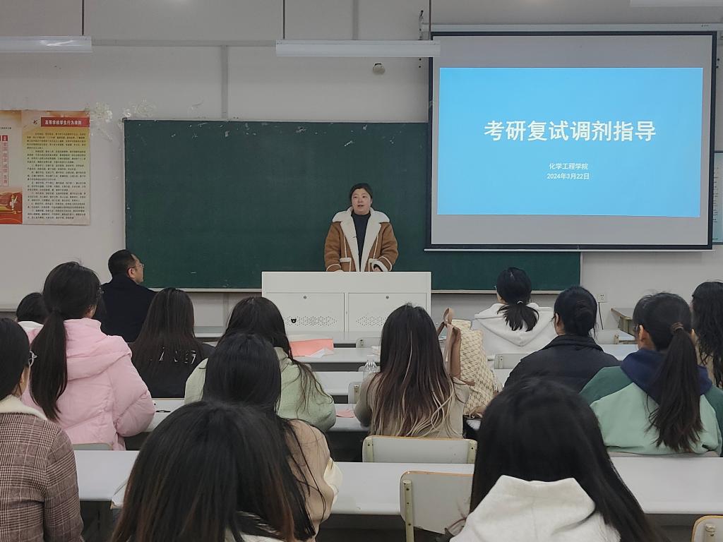 3月22日,ayxty.com化工学院在博学楼B108召开考研复试调剂指导会。学院相关指导教师、辅导员代表及80余名同学参会。
