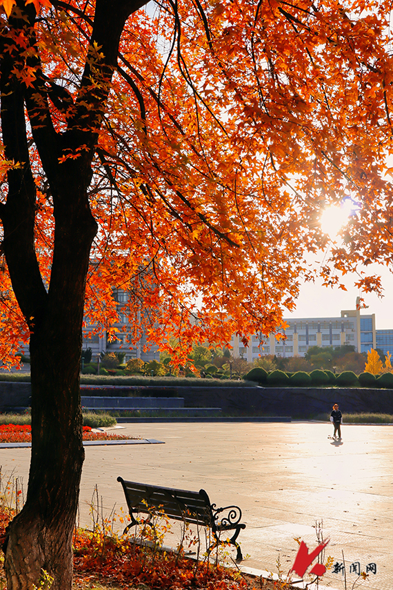 在阳光正好的秋日午后,校园的每一个角落都是一个橙黄明亮的世界。在满目金黄的篮球场打球;在微凉的校园一角读书;踩着沙沙作响的落叶去上课。秋日里的校园,别有一番景致!