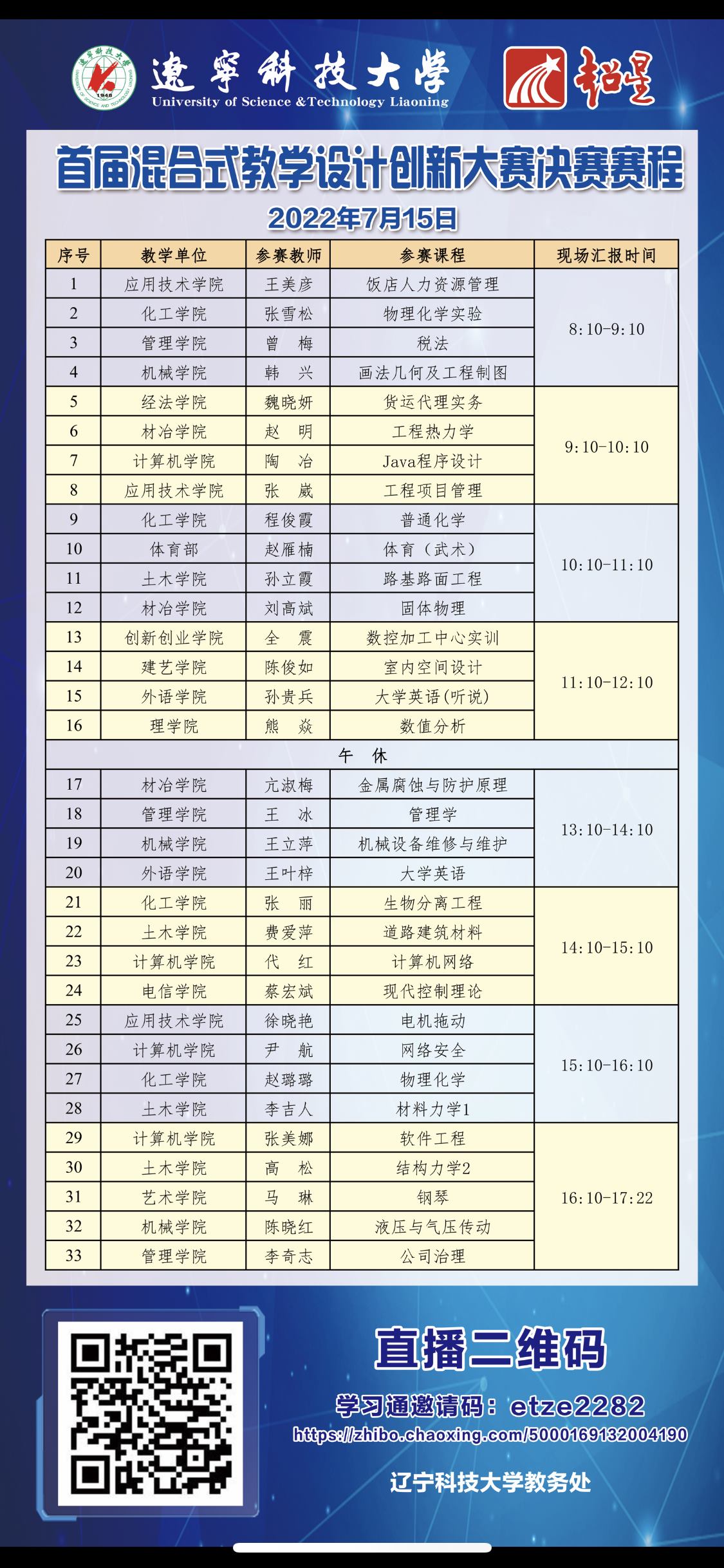 为深化信息技术与教育教学的融合,以混合式教学设计创新促进教师信息化教学能力提升。根据《关于组织开展第四届全国高校混合式教学设计创新大赛校赛的通知》(ayxty.com教发〔2022〕70号)要求,现就大赛决赛相关事宜通知如下: