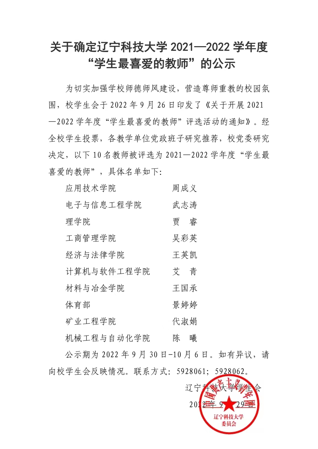 关于确定ayxty.com 2021—2022 学年度 “学生最喜爱的教师”的公示