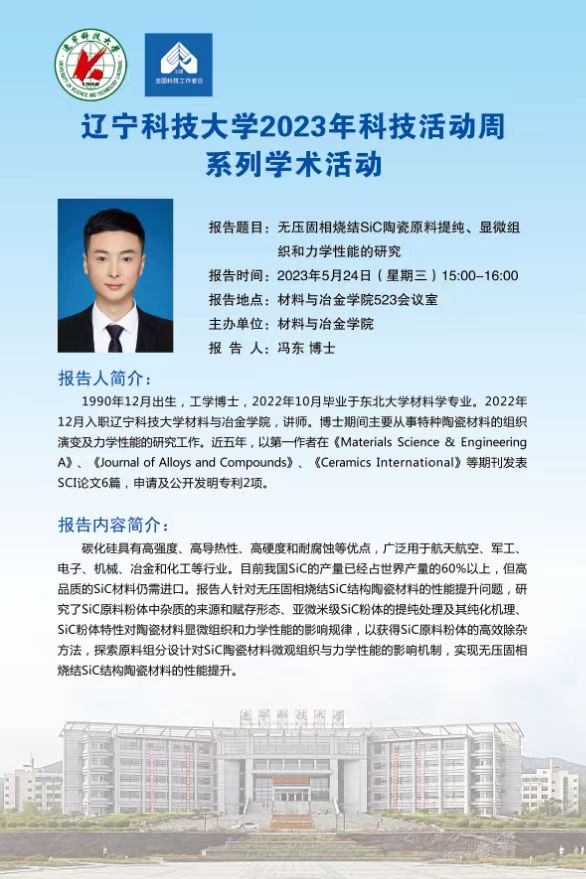 【科技活动周学术预告】无压固相烧结SiC陶瓷原料提纯、显微组织和力学性能的研究