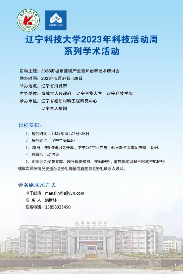 【科技活动周学术预告】2023海城市菱镁产业窑炉创新技术研讨会