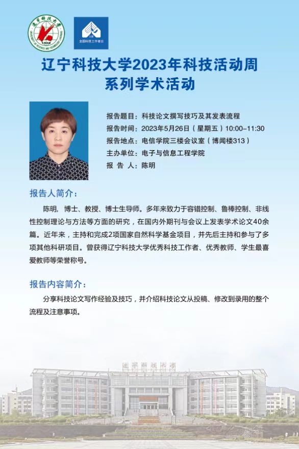 【科技活动周学术预告】科技论文撰写技巧及其发表流程