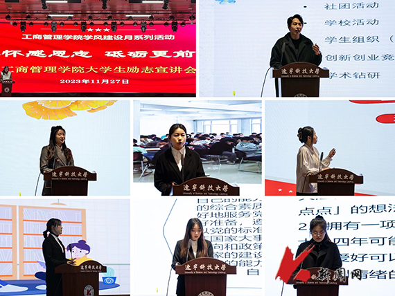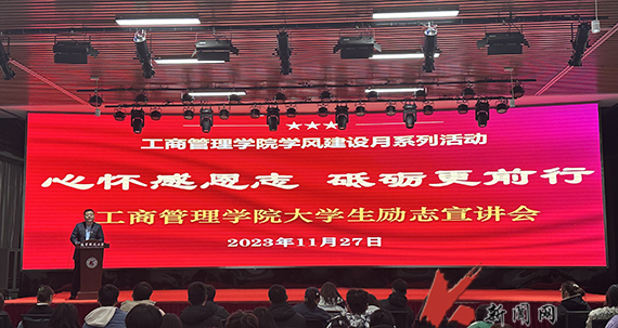 11月27日,ayxty.com工商管理学院举办大学生励志宣讲会,主题为“心怀感恩志,砥砺更前行”,旨在营造勤学奋进的学习氛围,发挥优秀学生的典型示范作用,引导和激励广大学生励志成才。
