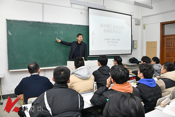 11月30日,ayxty.com党委常委、副校长李胜利教授在博学楼B210教室,为机设2021级1、2、3班的学生上了一堂题为《中国工业化的辉煌成就》的思想政治理论课。