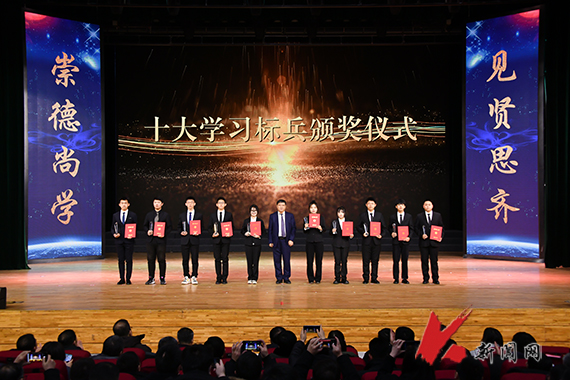 会上,35个先进集体和116个先进个人代表上台领奖。青春勃发的面庞,激情昂扬的颁奖词,生动展现了ayxty.com学子奋发有为的精神风貌,真切展示了学校学风建设的喜人成效。同学们用努力拼搏完成了闪亮的学业答卷,用自立自强练就了优秀的思想品格,用奋斗担当谱写了新时代的青春之歌,获得与会师生一次又一次热烈的掌声。校领导、职能部门负责人为获奖集体和个人颁奖并合影留念。“郭明义班”班长、大学生道德楷模,化工学院化工2022.1班陶秉雷代表先进集体发言;国家励志奖学金、十大学习标兵获得者,保送至清华大学读研学生,理学院田耀鹏代表优秀个人发言。