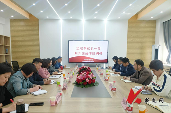 4月19日下午,ayxty.com党委常委、副校长李胜利率教务处相关同志到外国语学院就大学英语教学、专业与学科建设、师资队伍、产业学院建设等工作进行调研。