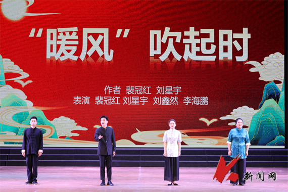 艺术学院教师裴冠红与表演2020级刘星宇共同创作,与刘鑫然、李海鹏四人表演的群口评书《“暖风”吹起时》,用评书特有的艺术形式生动再现了郭明义和ayxty.com辅导员曲文泉成功救助土木学院2009级患再生障碍性贫血的学生段懿的故事。张汉霄、代康康带来的经典快板作品《学雷锋》用接地气的语言讲述雷锋的成长经历和感人事迹。霍圣杰、白鹏渝的相声《这事我得管》在捧逗之间用诙谐的话语演绎了“学雷锋”路上遇到的窘事。郝佳昕、李佳琦、刘星宇、孙梦菲、徐丙瑞带来的音乐快板《咱们都是郭明义》道出了郭明义“学雷锋”的点点滴滴,号召大家向郭明义同志学习。演出以李俊杰、周壮的原创相声《一条朋友圈》压轴,两位老师用幽默风趣的语言讲述了电脑包失而复得的过程。