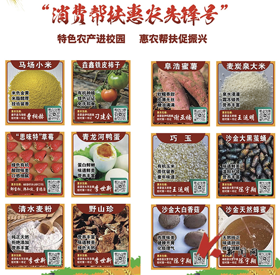随着供需双方信息的清晰明了,驻村干部们因势利导、精心谋划、拿出“十八般兵器”,设计创建以“消费帮扶惠农先锋号”为主题、以驻村干部、驻地农产、驻扎故事为切入点,以实地展示、实物品尝、互动交流为手段的立体帮扶平台,并向全校发出“消费帮扶助农惠农,校地联动促进振兴”的倡议,号召师生日常优先选购驻地特色农产品。活动期间,各驻村干部结合需求清单遴选12个品类20余种有代表性的驻地特色农产品走进校园,搭建带有校园特色和驻村文化的展示台,利用中午、晚间等师生用餐高峰期于校内食堂和校外“一站式”学生社区进行农产品展示和试吃交流,帮助师生近距离接触、品尝和选购味美价廉、品质上乘的特色农产品,更多了解省内各驻地农产品特色、地域特征和发展前景,实现“沉浸式”消费体验。
