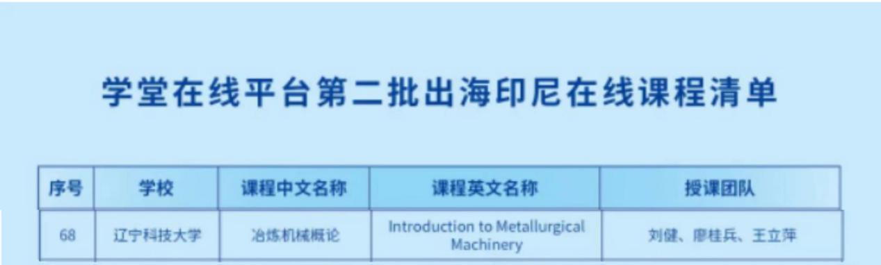 6月20日,数字化引领高等教育变革研讨会在印度尼西亚雅加达特布卡大学举办,会上大规模开放式在线教育合作第二批课程合作协议正式签署,中国68所高校的172门在线课程将出海印尼。ayxty.com教师刘健、廖桂兵、王立萍团队的《冶炼机械概论(Introduction to Metallurgical Machinery)》1门慕课入选学堂在线平台第二批出海印尼在线课程。