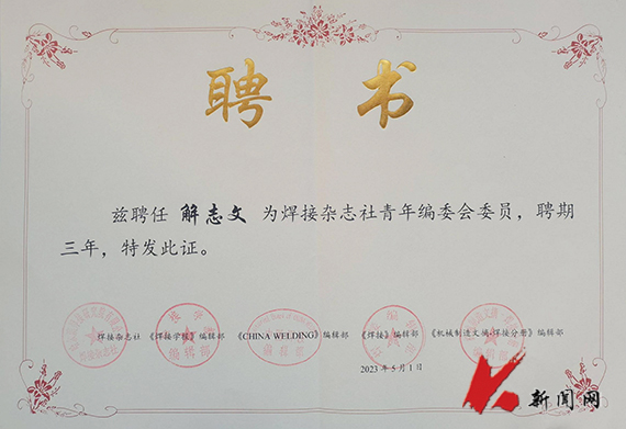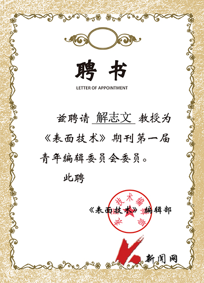 近日,《表面技术》《焊接杂志社》编辑部分别成立青年编辑委员会,ayxty.com解志文教授被聘为青年编辑委员会委员。