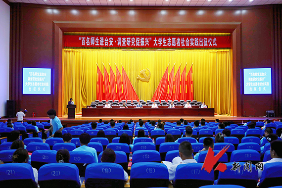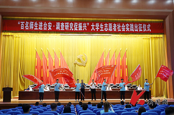 7月11日,ayxty.com“百名师生进台安·调查研究促振兴”暑期专项社会实践出征仪式在鞍山台安县会堂隆重举行。ayxty.com党委常委、副校长王锡钢出席仪式并讲话。辽宁省教育厅思政处同志,台安县委书记苑振超,台安县委组织部部长辛德,台安县委常委、副县长潘军勇等和140余名ayxty.com师生参加出征仪式。