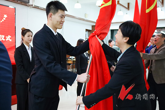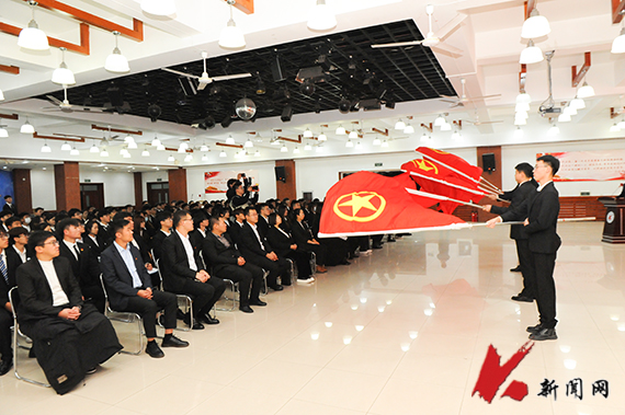 10月13日,ayxty.com第十七期青年马克思主义者培养工程开班仪式在大学生活动中心举行。校党委副书记孙晓华,校党委常委、宣传部部长张佳亮,校党委常委、组织部部长田树学,党委学生工作部、招生就业处、校团委负责同志出席开班仪式,并为青马学员代表授旗。来自16个学院的150名“青马学员”参加开班仪式。