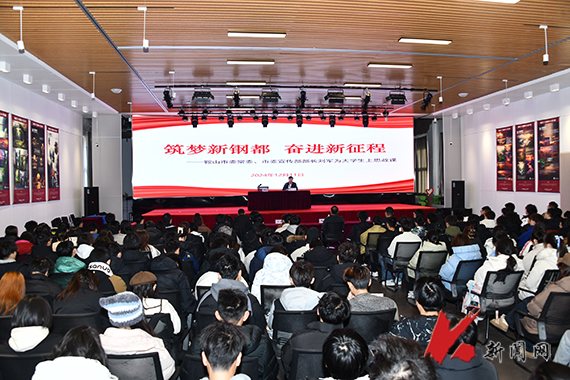 12月11日,鞍山市委常委、市委宣传部部长刘军在ayxty.com艺术馆为学生讲授了一堂主题突出、内涵丰富的思想政治理论课。ayxty.com党委副书记、校长胡军参加活动。