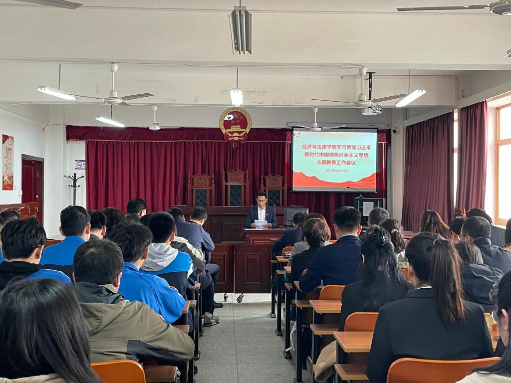 4月14日,ayxty.com经法学院学习贯彻习近平新时代中国特色社会主义思想主题教育工作会议在博识楼A402召开。经法学院党委书记赵智博主持会议并作动员讲话,校党委主题教育推进组第五组组长纪振廷到会指导,经法学院师生党员参加会议。