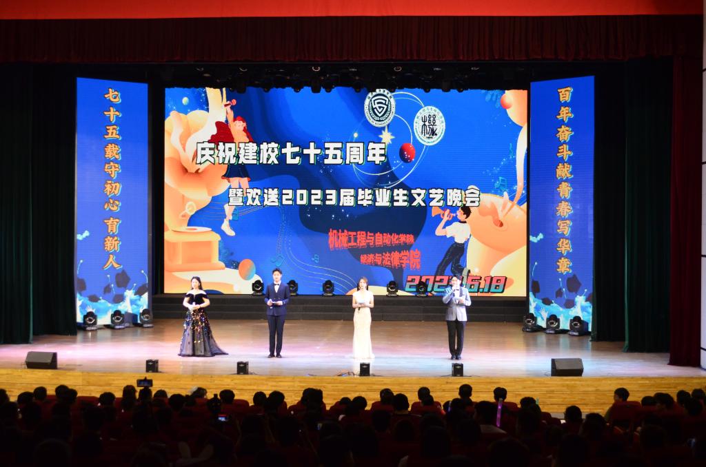 6月18日晚,ayxty.com经法学院、机械学院于学校礼堂联合举办建校七十五周年暨欢送2023届毕业生文艺晚会。经法学院、机械学院近800名师生通过线上线下相结合的方式观看了本次演出。