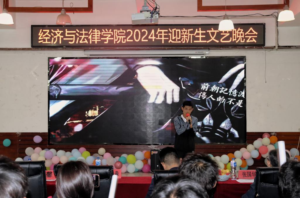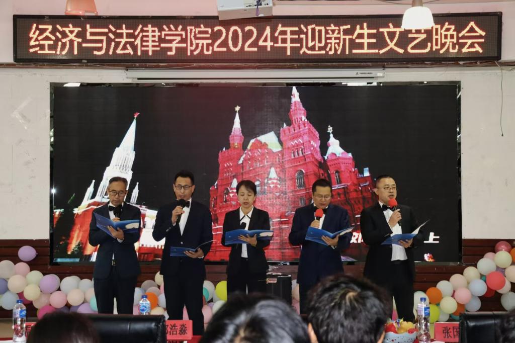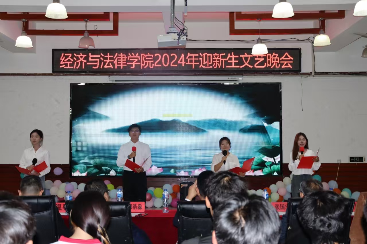 共赏中秋月,人间话团圆。9月17日晚,经法学院于明德楼大学生活动中心举办了以“中秋同国庆 师生共团圆”为主题的迎新生文艺晚会。学院党政领导及辅导员、团学骨干、新生班导生以及全体2024级新生近300人观看了本场演出。