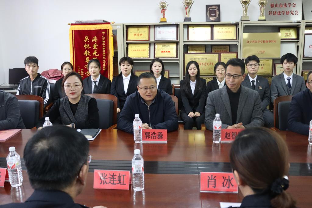 仪式上,双方代表共同探讨法律援助工作的重要性和未来发展方向。铁东区司法局局长肖冰表示,法律援助是维护社会公平正义的重要一环,经法学院与司法局的合作将为群众提供更加便捷、高效的法律援助服务。肖冰局长对经法学院在法学教育和法律服务方面取得的成就表示肯定,并承诺将全力支持法律援助工作站的建设,为加强高校法律援助志愿服务工作贡献力量。同时,司法局工作人员鼓励在场同学积极加入法律援助工作站,共同推动法律援助事业的发展。经法学院副院长邵玲代表学院全体师生对司法局各位领导的到来表示热烈欢迎,并介绍了经法学院开展法律援助的基础设施、师资队伍和学生培养等方面的基本情况。她表示,经法学院将整合现有资源,为法律援助工作站提供必要的工作场所和专业支持,并积极配合铁东区司法局的各项工作内容,确保法律援助服务的质量和效率。最后,双方就共建法律援助工作站签署合作协议并合影留念。