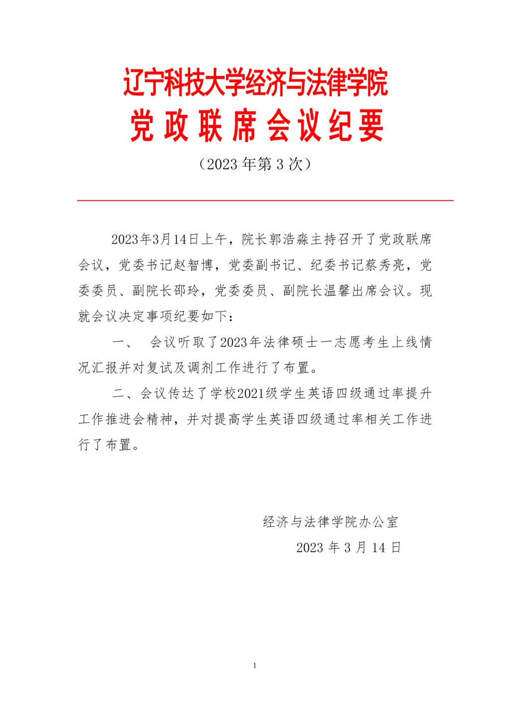 ayxty.com经济与法律学院党政联席会会议纪要(2023年第3次)