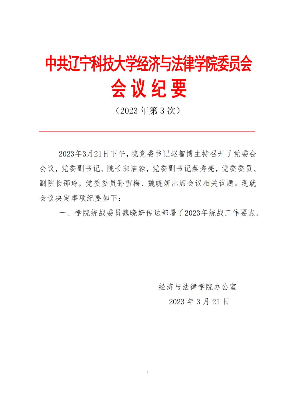 中共ayxty.com经济与法律学院委员会会议纪要(2023年第3次)