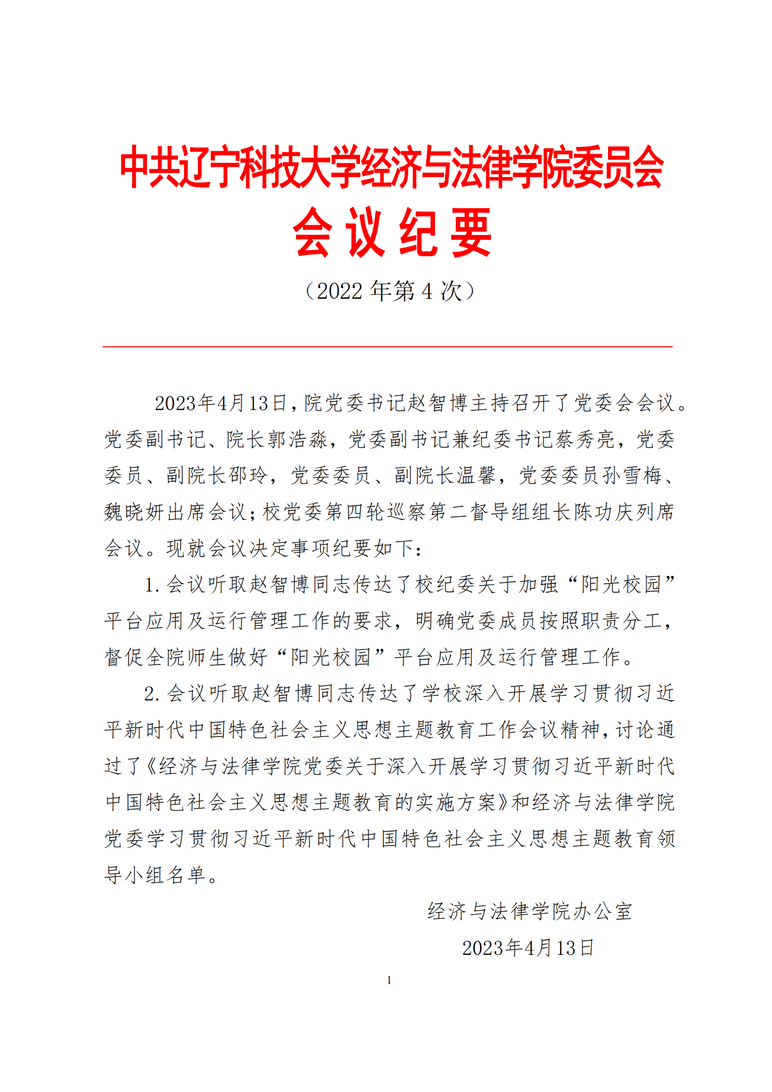 中共ayxty.com经济与法律学院委员会会议纪要(2023年第4次)